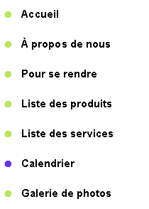 Accueil | À propos de nous | Pour se rendre | Liste des produits | Liste des services | Calendrier |